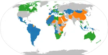 A gender quota is a tool used by countries and parties to increase women's representation in legislature.[1] Women are largely underrepresented in parliaments and account for a 25.8% average in parliaments globally.[2] As of November 2021, gender quotas have been adopted in 132 countries.[3] Around the world, quotas vary greatly in their enforcement and the stage of electoral process targeted, creating three main types of quotas: legislated candidate quotas, voluntary party quotas, and reserved seats.[1] Regardless of their prevalence, they are a controversial measure, creating debates concerning their impacts, both negative and positive.[4]