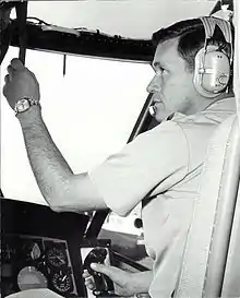 Retired United States Army Lieutenant Colonel Gene Tunney Boyer[2] (July 24, 1929 – August 27, 2016) was the chief pilot of Army One, the helicopter transporting the President of the United States, between 1964 and 1975.[3] Boyer was the pilot during President Richard Nixon's last day in office on August 9, 1974, when Nixon famously delivered the V sign just prior to leaving office. He led the restoration of the VH-3A "Sea King" helicopter, tail number 150617, that served as Army One that day.[3] That helicopter is now on permanent display at the Richard Nixon Presidential Library and Museum.[3] Boyer also served Presidents Johnson and Ford as a White House pilot. Boyer co-wrote his memoirs, Inside the President’s Helicopter: Reflections of a White House Senior Pilot, with Jackie Boor.
