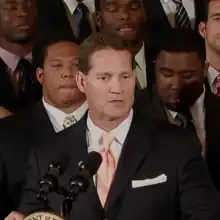 Eugene C. Chizik Jr.[1] (born December 28, 1961) is an American football coach who is currently the defensive coordinator and Assistant Head Coach for Defense at North Carolina.[2] A veteran of the coaching ranks, Chizik previously was UNC's defensive coordinator for the 2015 and 2016 seasons, and served as the head coach of the Auburn football team from 2009 until the end of the 2012 season.[3] Chizik's 2010 Auburn Tigers football team completed a 14–0 season with a victory over Oregon in the BCS National Championship Game, and quarterback Cam Newton won the Heisman Trophy. Chizik played college football at the University of Florida in 1981 for head coach Charley Pell.[4]