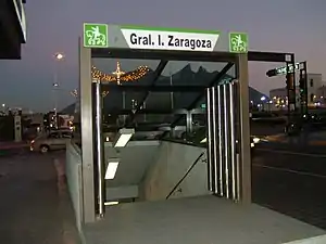 General I. Zaragoza (Spanish: Estación General I. Zaragoza or Terminal Zaragoza) is a station on Lines 2 and 3 of the Monterrey Metro. It is located in Monterrey, on the heart of the Macroplaza. The station was opened on 30 November 1994 as the eastern terminus of the inaugural section of Line 2, between General Anaya and Zaragoza.[2][1]