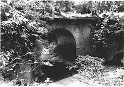 The destroyed arch was rebuilt in 1898 by the US Corps of Engineers. Keystones of the arch "embody its history": one side shows a castle, the symbol of the U.S. Army Corps of Engineers, and the other provides inscription that it was reconstructed in 1898 by the First Regiment of the Fifth Battalion of the Corps. The arch is otherwise decorated by geometrical designs in relief. Abutments of the bridge are from the 1862 original construction.[2]