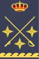 The General of the Air insignia consist in a baton crossed over a saber under a Royal Crown and a star in every angles that form the crossed baton and the saber. Being under a Crown means that the rank is part of the generalship (the group of generals of the Armed Forces), the baton and the saber means command and the four stars means the rank of General. This insignia was used before to 1999 by the Head of State as Captain General.[2]