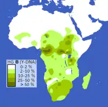 - Quintana-Murci L, Quach H, Harmant C, Luca F, Massonnet B, Patin E, et al. (February 2008). "Maternal traces of deep common ancestry and asymmetric gene flow between Pygmy hunter-gatherers and Bantu-speaking farmers". Proceedings of the National Academy of Sciences of the United States of America. 105 (5): 1596–1601. Bibcode:2008PNAS..105.1596Q. doi:10.1073/pnas.0711467105. PMC 2234190. PMID 18216239.