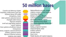 Down syndrome is a chromosomal abnormality characterized by the presence of an extra copy of genetic material on chromosome 21, either in whole (trisomy 21) or part (such as due to translocations). The effects of the extra copy varies greatly from individual to individual, depending on the extent of the extra copy, genetic background, environmental factors, and random chance. Down syndrome can occur in all human populations, and analogous effects have been found in other species, such as chimpanzees and mice. In 2005, researchers have been able to create transgenic mice with most of human chromosome 21 (in addition to their normal chromosomes).[1]