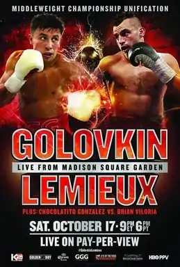 Gennady Golovkin vs. David Lemieux was a middleweight unification professional boxing match contested between WBC interim, WBA (Super), and IBO champion, Gennady Golovkin and IBF champion, David Lemieux. The bout took place at Madison Square Garden on October 17, 2015.