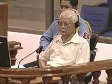 - Nuon Chea, a former prime minister, was indicted on charges of genocide, war crimes, crimes against humanity, and several other crimes under Cambodian law on 15 September 2010. He was transferred into the custody of the ECCC on 19 September 2007. His trial began on 27 June 2011.[83][84] On 16 November 2018, he was sentenced to life in prison for genocide.[85]