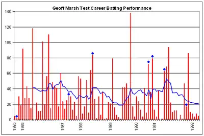 - Marsh's best Test batting score of 138 was made against England, Nottingham, 1989