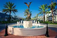 The Stuart Sailfish is an 18 ft bronze monument sculpted by Geoffrey Smith and cast by Eagle Bronze Incorporated, located in Lander, Wyoming.[7] The 3,000 lb sculpture, installed in 2003 in the center of the "Sailfish Circle" roundabout at Dixie Highway and Joan Jefferson way, was created with special architectural armature, enabling it to withstand wind gusts of up to 200 mph, an essential in an area frequently hit by hurricanes.[8] Since its installation on January 2, 2003, it has since been adopted as the symbol of the city of Stuart, Florida, a location deemed "The Sailfish Capital of the World."[9]
