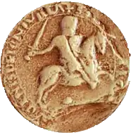 The nickname Trullardus or Trouillart, is attested in the lengthy epitaph written in 1311 by Geoffrey's nephew John of Joinville for the tomb of his great-grandfather and Geoffrey's grandfather, Geoffrey III (died 1188), in Clairvaux. The epitaph contains a genealogy of the family, including "Joffroy Troulart, who was lord of Joinville". Its meaning is unknown, but was not terribly uncommon in Champagne, for several members of the Villehardouin family carried it. A legend dating at least to 1498 and current at the court of Duke René II of Lorraine states that he obtained his nickname from having killed a Genoese pirate with a trouille, perhaps a fishing spear.[6][7]