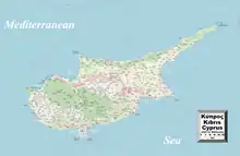 In much of the island, access to a year-round supply of water is difficult.[4] This is traditionally attributed to deforestation which damaged the island's drainage system through erosion,[4] but Grove and Rackham question this view.[7] A network of winter rivers rises in the Troodos Mountains and flows out from them in all directions.[4] The Yialias River and the Pedhieos River flow eastward across the Mesaoria into Famagusta Bay; the Serraghis River flows northwest through the Morphou plain.[4] All of the island's rivers, however, are dry in the summer.[4] An extensive system of dams and waterways has been constructed to bring water to farming areas.[4]