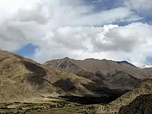 Suru and Zanskar valleys form a great trough at the foot of the northern, heavily glaciated flank of the Himalayas, while opposite rise the mountains of the Zanskar range.