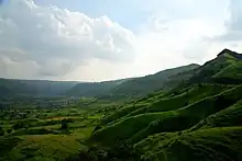 Except around Mumbai, and along the eastern limits, the State of Maharashtra presents a monotonously uniform, flat-topped skyline. This topography of the state is the outcome of its geological structure. The state area, barring the extreme eastern Vidarbha region, parts of Kolhapur and Sindhudurg in the west, is practically co-terminous with the Deccan Traps. Roughly 60 to 90 million years ago, the outpouring of basic lava through fissures formed horizontally bedded basalt over large areas. Variations in their composition and structure have resulted in massive, well-jointed steel-grey cliff faces alternating with structural benches (abandoned narrow stepped and rocky paleo-channel of rivers) of vesicular amygdaloid lava and ash layers, all of which contribute to the pyramid-shaped hills and crest-level plateau or mesas (flat sedimentary rock overlaid by harder rock).