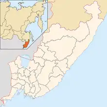 Primorsky Krai is located in the southern far east, in the south-eastern part of Russia. In the north it borders with Khabarovsk Krai, in the west with the Chinese Provinces of Jilin and Heilongjiang, in the south-west with North Korea (Special City of Rason) and at the south-east with the Sea of Japan. The total length of the borders is 3,000 km (1,864 miles) and the coastline is 1,500 km (932 miles). The total area is 165,900 km2 (64,100 sq miles) which is 0.97% of the total area of Russia, which makes it 23rd largest federal subject of Russia. The total length of the krai is 900 km and the width is 280 km.[1]