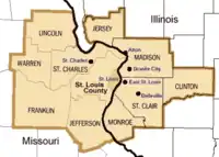 The St. Louis Metropolitan Statistical Area is the 19th largest by population in the United States, with 2,813,912 as of 2008. It includes St. Louis County (991,830), the independent City of St. Louis (319,294), the Missouri counties of Saint Charles (360,485), Jefferson (217,679), Franklin (100,898), Lincoln (52,775) and Warren (31,214), and the Illinois counties of Madison (267,038), Saint Clair (261,409), Macoupin (48,143), Clinton (36,470), Monroe (32,335), Jersey (22,451), Bond (18,253), and Calhoun (5,101).