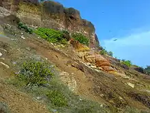 Unlike the flat portion of the Kerala coast, at the northern coastal region cliffs are found adjacent to the Arabian Sea at Varkala.[5] These tertiary sedimentary formation cliffs are considered as a unique geological feature. It is known among geologists as the "Varkala Formation" and a geological monument as declared by the Geological Survey of India.