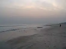The Ganges enters West Bengal near Rajmahal and then flows in a southeasterly direction. It divides in two near north of Dhulian in Murshidabad district.[10] One branch enters Bangladesh as the Padma (or Pôdda), while the other flows through West Bengal as the Bhagirathi and Hooghly River in a southern direction. The Bhagirathi-Hooghly is the main river in West Bengal, and flows past some of the important cities like Murshidabad, Baharampur, Nabadwip, Chinsura, Chandannagar, Srirampur, Howrah, Kolkata, Diamond Harbour, and Haldia. It empties into Bay of Bengal near Sagar Island in the South 24 Parganas district.[10]