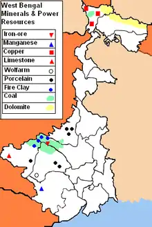 West Bengal stands third in India in terms of mineral production by state, contributing about one-fifth of the total mineral production of the country.[10]