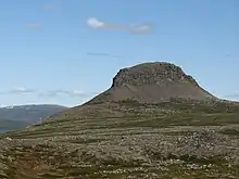 The youngest rocks in Finland are those found near Kilpisjärvi in Enontekiö (the northwesternmost part of the country's northwestern arm).[35] These rocks belong to the Scandinavian Caledonides that assembled in Paleozoic times.[2] During the Caledonian orogeny Finland was likely a sunken foreland basin covered by sediments; subsequent uplift and erosion would have eroded all of these sediments.[36] In Finland, Caledonian nappes overlie shield rocks of Archean age.[7] Despite occurring in about the same area the Scandinavian Caledonides and the modern Scandinavian Mountains are unrelated.[37][38]