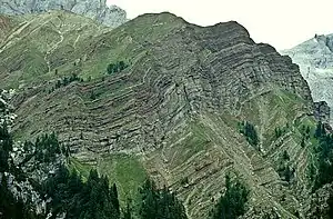 Changing interaction between the European Plate and the Adriatic Plate resulted in tectonic compression along the Adriatic Plate's northern margin, kicking off the formation of the Alps and the Apennines. In the late Cretaceous, foredeeps filled with flysch and molasse sediments shed off the rising mountains. Examples include the Bergamo Flysch within the Lombard Basin of the Southern Alps. [6]