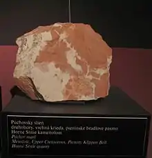 Peat, eolian wind-blown sands, fluvial sand and gravel and loess are all typical Quaternary sediments, formed in the past 2.5 million years old and dominating the surface of Slovak lowlands.[3] The loess sheets of Slovakia are named, from the lowest to the highest W1, W2 and W3. In between W1 and W2 lies a layer of black-earth soil and between W2 and W3 lies an incipient soil which in parts is gleyed or cryoturbated.[2]