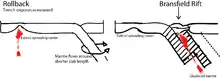 The last and most recent stage in the evolution of the Antarctic Peninsula subduction zone is the opening of the Bransfield Rift,[2][5] creating the Bransfield back-arc basin from the Oligocene to the present day.[2] This basin separates the inner, older magmatic arc (mainland Antarctic Peninsula) from the outer, younger magmatic arc (South Shetland Islands).[9] Alkaline and tholeiitic volcanic activity is associated with this rifting event.
