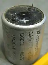 Geophones have historically been passive analog devices and typically comprise a spring-mounted wire coil moving within the field of a case-mounted permanent magnet to generate an electrical signal.[1] Recent designs have been based on microelectromechanical systems (MEMS) technology which generates an electrical response to ground motion through an active feedback circuit to maintain the position of a small piece of silicon.