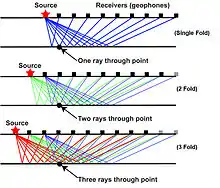 The majority of geophones are used in reflection seismology to record the energy waves reflected by the subsurface geology. In this case the primary interest is in the vertical motion of the Earth's surface. However, not all the waves are upwards travelling. A strong, horizontally transmitted wave known as ground-roll also generates vertical motion that can obliterate the weaker vertical signals. By using large areal arrays tuned to the wavelength of the ground-roll the dominant noise signals can be attenuated and the weaker data signals reinforced.