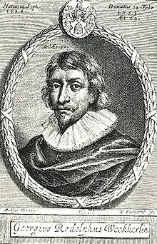 Georg Rudolf Weckherlin (15 September 1584 – 13 February 1653) was a German poet and diplomat. Influenced by the French La Pléiade, his poetry introduced Renaissance forms and themes previously unknown in German verse.