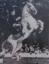 In 1939, Wahl joined the cavalry of the Wehrmacht, where he was under the command of Hans-Joachim Köhler from Verden. Köhler, who later became known worldwide as an expert in the field of horse training, organised a dressage competition for his troops to improve their morale. Held only 20 km behind the front lines, Wahl showed himself to be the best of the riders present. Alois Podhajsky happened to attend this competition, and in 1940, Podhajsky recruited Wahl to the Spanish Riding School.[1] Because Wahl possessed extraordinary talent and feeling for horses he advanced quickly at the school and within a very short time participated in the School's public performances. From 1938 until 1944 he served as a Rider (Bereiter) at the School.[2]