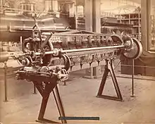 While a student at Harvard, Grant worked on the problem of inventing a mechanical calculator. With the encouragement of his professor, Oliver Wolcott Gibbs, he set about improving on the work of Babbage and Per Georg Scheutz.[5] He published this work in the American Journal of Science and Arts (see below), and was awarded two patents as a student. Shortly after college, Grant designed and built two calculating machines that were displayed at the Centennial Exposition held in Philadelphia in 1876[6] One of them, known as a difference engine, was eight feet long and five feet high, and weighed 2,000 pounds. It may have been the largest calculator ever built (pictured below).[7] The other, known as the "Centennial Model", is among the Smithsonian collection of Grant's inventions.[8] The Smithsonian Institution has nine of Grant's inventions in its collection in Washington, D.C.[9] Grant's calculating machine business was known as "Grant Calculating Machine Company of Lexington, Mass". Although Grant's sales of calculating machines were modest (125 of the "Rack and Pinion Model" were sold commercially), his machines were considered sturdy and reliable[10] Grant's calculators won a number of awards: the Centennial Medal, the Scott Medal of The Franklin Institute, and the Gold Medal of the Massachusetts Mechanics Association.[11]