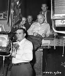 ![]() George Barnes at top right behind Cecil B. DeMille on set of Samson and Delilah (1949) | |