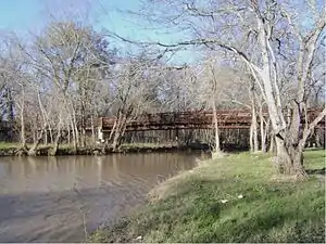 ![]() Hike/bike trail crossing Buffalo Bayou in George Bush Park. | |