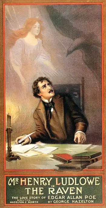 Poster for a 1908 production of George Hazelton's The Raven: The Love Story of Edgar Allan Poe