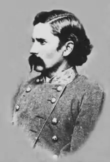 George Blake Cosby was born on January 19, 1830, in Louisville, Kentucky.[1][2] He graduated 17th of 43 in the 1852 class of the United States Military Academy at West Point, New York.[1][2] He was assigned as a brevet Second Lieutenant to the U.S. Mounted Riflemen Regiment on July 1, 1852, and was appointed a full Second Lieutenant on September 16, 1852.[1] Cosby was wounded fighting Native Americans (Indians) at Lake Trinidad, Texas, on May 9, 1854.[3] Cosby transferred to the 2nd U.S. Cavalry Regiment on March 3, 1855.[1] He was promoted to First Lieutenant on May 1, 1856, and to captain on May 8, 1861.[1] He taught cavalry tactics at West Point before his resignation to join the Confederate States Army.[4] Cosby resigned on May 10, 1861, in order to join the Confederate Army.[1]