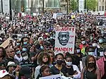 - Montreal: Thousands attended a protest outside the Montreal police headquarters on 31 May.[73] The protests eventually escalated into unrest, and police fired tear gas.[74] Several store windows were damaged, and some items were stolen. Eleven arrests were made, including one for assault.[75] Several thousands protestors held another rally and march on 7 June.[76]