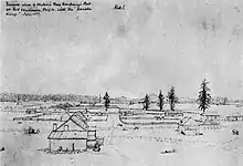 Gibbs may also have met Peter Skene Ogden during his first days in Fort Vancouver and Oregon City; later correspondence indicates he was well acquainted with Ogden.[14] He found work as the deputy collector of Customs at the Port of Astoria, Oregon Territory in Astoria, Oregon, and dabbled with practicing law again. In the spring of 1851, he joined the Oregon Indian Commission (composed of John P. Gaines, Alonzo A. Skinner and Beverly S. Allen) on a treaty excursion,[lower-alpha 3] traveling through the Willamette Valley negotiating with the tribes, passing through Oregon City and again ending up in Fort Vancouver in July, 1851.[16]