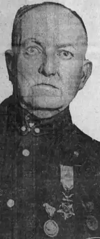 George H. Eldridge was born in Sackets Harbor, New York on May 12, 1844. He later moved to Michigan where, at the start of the American Civil War, he joined the 24th Michigan Volunteer Infantry which along with the 2nd, 6th and 7th Wisconsin Volunteer Infantry regiments, would form the "Iron Brigade" of the Army of the Potomac. Eldridge returned to military service years later when he enlisted in the U.S. Army in Detroit and was assigned to the 6th U.S. Cavalry. He took part in campaigns against the Plains Indians during the Texas-Indian Wars, most notably, against the Kiowa in the late-1860s. On July 6, 1870, he was among the cavalrymen under Captain Curwen B. McClelland who left Fort Richardson (near Jacksboro, Texas) to pursue renegade Indians who had seized mail from nearby Rock Station. After a 5-day chase, McClelland's force was ambushed at Wichita River by a force of 250 warriors under Chief Kicking Bird resulting in the Battle of the Little Wichita River. Despite being outnumbered and outgunned, the cavalry troopers managed to force the Kiowas to retreat after heavy fighting. After returning to Fort Richardson, Eldridge and 12 other soldiers were received the Medal of Honor for "gallantry in action" on August 25, 1870.[1][2][3][4][5][6][7][8][9] He died in Los Angeles, California on November 20, 1918, and was interred at the Los Angeles National Cemetery.[5]