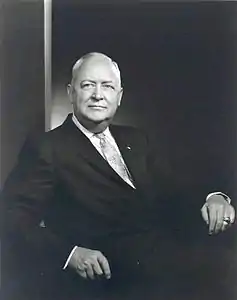 Olmsted returned to Des Moines in 1946. The management team that he had built in his companies before leaving for military service had performed well during the war years and his return became a matter of picking up where he had left off. After an unsuccessful bid for the Republican nomination for governor of Iowa in 1947,[2] he continued to expand his business activities and became a partner in the Equity Corporation in New York. He became a leader in the United World Federalists in 1947, later serving as a national vice-president of the organization. In 1948 he met Carol Shearing of Marilla, New York, and they were married in 1949. Recalled to active duty with the Army in 1950, General Olmsted assumed command of the Army's military assistance operations. Once again, it was a case of finding the equipment and resources that Allied Governments requested and getting it to them. So successful were his activities that he was promoted to major general in 1951 and assigned to the Office of the Secretary of Defense to assume command of all US government military assistance be it Army, Navy, or Air Force. Released from active service in 1953, Olmsted returned to Des Moines to resume his business career. He continued, however, to serve in the Army Reserve and was the Commanding General of the 103rd Infantry Division USAR from 1953 to 1959.