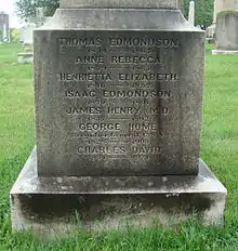 Steuart is buried in Green Mount Cemetery in Baltimore with his wife Maria, who died three years later, in 1906. They were survived by their two daughters, Marie and Ann.[8] Perhaps not surprisingly, as Maryland had remained in the Union throughout the war, there is no monument to Steuart in his home state. However, the Steuart Hill area of Baltimore recalls his family's long association with the city.[56]
