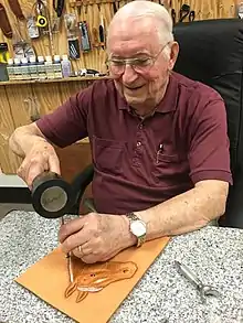 George Hurst (born 1933 Died 2022) is an American leather artist known for his contributions to leathercraft instruction.[1] With nearly 8 million views on his leatherworking tutorial videos on YouTube,[1] Hurst is recognized internationally as a teacher. His contributions to the leather industry over the last 50 years have been recognized with an Al Stohlman Award for Achievement in Leathercraft,[2] the Lifetime Achievement Award by the International Federation of Leather Guilds, and the Master Leather Artisan Award by the Academy of Western Artists.[3]