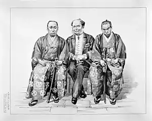 ![]() Vice-Admiral George King with Mōri Takachika and Mōri Motonori of Chōshū Domain in 1867 (Yamaguchi Prefectural Archives)[1] | |