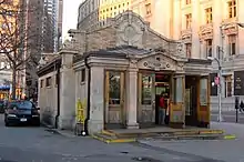 Beginning in 1901, Heins & LaFarge designed subway stations and buildings for the Interborough Rapid Transit Company under the direction of the chief engineer, William Barclay Parsons. When the Interborough Rapid Transit's original line opened on October 27, 1904, its showpiece station was City Hall, designed by Heins & LaFarge using uninterrupted sweeping Guastavino-tiled arches and vaults which incorporated shaped skylights and mosaics and polychrome terracotta panels. Throughout the original stations the polychrome faience panels (from Grueby Faience Company, Boston, and the Atlantic Terra Cotta Company of Staten Island and New Jersey) were designed by the firm, using several tile patterns. The partners' control house for the IRT is at Bowling Green station under Manhattan's Bowling Green at the corner of the Battery in the Dutch Renaissance manner reminiscent of New Amsterdam. A few Heins & LaFarge subway entrances survive, including the one at 72nd Street and Broadway. After Heins died in 1907, LaFarge decided to pursue a solo practice and in 1908 was replaced as architect in charge of the IRT project by Squire J. Vickers.[7]