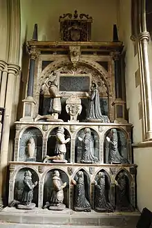 Sir George Manners (1569–1623) of Haddon Hall in Derbyshire, England, served as a Member of Parliament for Nottingham, 1588–1589, and for Derbyshire, 1593–1596. His elaborate triple-decked monument with kneeling effigies of himself and his wife and family survives in the Vernon/Haddon Chapel, All Saints Church, Bakewell, Derbyshire.
