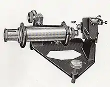 Minchin met William Wilson in London and the latter invited him to try his cells at the new observatory at his home, Daramona House, Co.Westmeath. In April 1895, Wilson and Minchin operated the 2-foot (60 cm) reflector, and FitzGerald the galvanometer below. Minchin published the results of a few days' observations in the Proceedings of the Royal Society, describing the relative magnitudes of the stars Regulus, Arcturus and Procyon, and acknowledging Monck's measurements. It is believed he visited Wilson's home in 1894 and 1897, and he certainly did in September 1895 and January 1896, but no other observations were recorded.[4][2]
