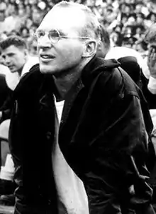 Munger was hired by Penn as the freshman football and track coach in 1936 and held that position during the 1936 and 1937 football seasons. In January 1938, the 28-year-old Munger took over as the head coach of the Penn football team. He also became an assistant professor in the Department of Physical Education effective July 1, 1938. He served as the head football coach at Penn for 16 years from 1938 to 1953, compiling a record of 82–42–10 for a .649 winning percentage.[9] His Penn teams finished ranked among the top ten college football teams in the United States on three occasions,[10][11] including a No. 7 ranking in 1947 and a No. 8 ranking in 1945.[12] Munger's 1947 team finished with an undefeated 7–0–1 record and outscored opponents 219 to 35. The 1947 team shut out both Navy and Cornell by identical scores of 21–0, and its only setback was a 7–7 tie with Army.[13]