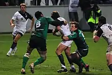 Naoupu left Highlanders in 2009, moving to Irish provincial side Connacht. Joining ahead of the 2009–10 season, Naoupu made his debut for the side in a 2009–10 European Challenge Cup game with Worcester Warriors on 12 December 2009.[5] He made his league debut in the province's 2009–10 Celtic League game against Irish rivals Munster on 26 December that year, starting the game and playing the full 80 minutes.[6] Naoupu played another seven league games for the side, starting in all of them and scoring a try.[7] In Europe, Naoupu played six of Connacht's eight games as they reached the last four, and scored two tries against Olympus Madrid.[5] He started for Connacht in the semi-final on 29 April 2010, where they were narrowly beaten by a Jonny Wilkinson-inspired Toulon side.[8]