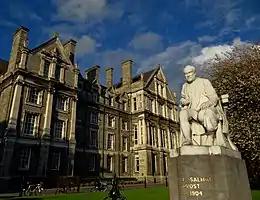 Salmon was provost during the campaign for admission by the Central Association of Irish Schoolmistresses (CAISM), in which Alice Oldham was an important figure. Salmon and the board were not generally receptive to the campaign. While Salmon was a conservative, his strong opposition to the admission of women cannot be dismissed simply; he had been a member of the council of Alexandra College, had supported girls competing on equal terms with boys in Intermediate examinations and his daughter, from the provost's house, had acted as coordinator for the Examinations for Women and was a member of CAISM.[11][12] In 1896, all eight members of the board were over 70 years of age, but by 1901 retirements and deaths had resulted in the majority of the board being pro-admission.[13]