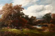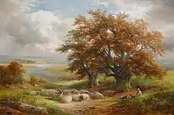 Turner worked in oils and painted bucolic scenes mainly of his native Derbyshire, leaving an important legacy of hundreds of pictures depicting the English countryside before the coming of mechanisation, the motor car and urban expansion. His work was exhibited in Nottingham and Birmingham. Turner served on the Art Committee of Derby Art Gallery and both his and his son's paintings[3] are included in the city's collection.[4] Turner has 22 paintings in national collections in the United Kingdom.[5]
