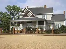 The main house was built in 1898 in Late Victorian style. It is a two-story frame house on a brick pier foundation.[1]