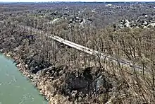 The George Washington Memorial Parkway, colloquially the G.W. Parkway,[3][4] is a 25-mile-long (40 km) parkway that runs along the south bank of the Potomac River from Mount Vernon, Virginia, northwest to McLean, Virginia, and is maintained by the National Park Service (NPS). It is located almost entirely within Virginia, except for a short portion of the parkway northwest of the Arlington Memorial Bridge that passes over Columbia Island within the District of Columbia.